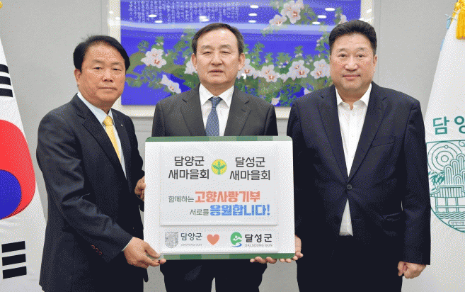 ´Þ¼º±º »õ¸¶À»È¸´Â 2015³â ´ã¾ç±º »õ¸¶À»È¸¿Í ÀڸŰῬÀ» ¸ÎÀº ÈÄ ´ã¾ç±º°úÀÇ »ó»ý ±³·ù ¹× Çù·ÂÀ» À§ÇØ ²ÙÁØÈ÷ ³ë·ÂÇßÀ¸¸ç À̹ø »óÈ£±âºÎ ¿ª½Ã ÁÖ¹ÎÁÖµµ Áö¿ª »ó»ý¹ßÀü°ú °íÇâ»ç¶û±âºÎÁ¦ÀÇ ¼º°øÀûÀÎ Á¤ÂøÀ» ÀÀ¿øÇÏ´Â °¢ »õ¸¶À»È¸ÀÇ ¶æÀ» ¸ð¾Æ ¼º»çµÆ´Ù.