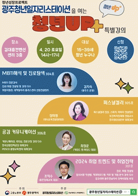 ¡®Ã»³â ¾÷(UP)+¡¯ Ư°¿¡ ´ëÇÑ ÀÚ¼¼ÇÑ ³»¿ëÀº ±¤ÁÖû³âÁ¤Ã¥Ç÷§Æû°ú ±¤ÁÖû³âÀÏÀÚ¸®½ºÅ×ÀÌ¼Ç ´©¸®Áý¿¡¼ È®ÀÎÇÒ ¼ö ÀÖ°í, Âü¿©¸¦ ¿øÇϴ û³âÀº 18ÀÏ ¹ã 11½Ã30ºÐ±îÁö ¿Â¶óÀÎ ¸µÅ©¸¦ ÅëÇØ ½Åû¼¸¦ Á¦ÃâÇÏ¸é µÈ´Ù.