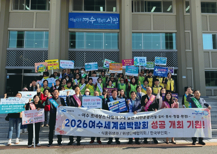 ÀÌ´Â 2026¿©¼ö¼¼°è¼¶¹Ú¶÷ȸ¸¦ ¾ÕµÎ°í ¡®´Ù½Ã ã°í ½ÍÀº °ü±¤µµ½Ã¡¯ À̹ÌÁö Á¦°í¸¦ À§ÇÔÀ¸·Î ¡®¿©¼ö ¸£³×»ó½º ´ÙÇÔ²² 5´ë ½Çõ ½Ã¹Î¿îµ¿¡¯ ÀÏȯÀ¸·Î ÃßÁø, ¿Ü½Ä¾÷¡¤¼÷¹Ú¾÷ µî À§»ý´ÜüÇùÀÇȸ, ¼ÒºñÀÚ´Üü, °ø¹«¿ø µî 70¿©¸íÀÌ Âü¿©Çß´Ù.