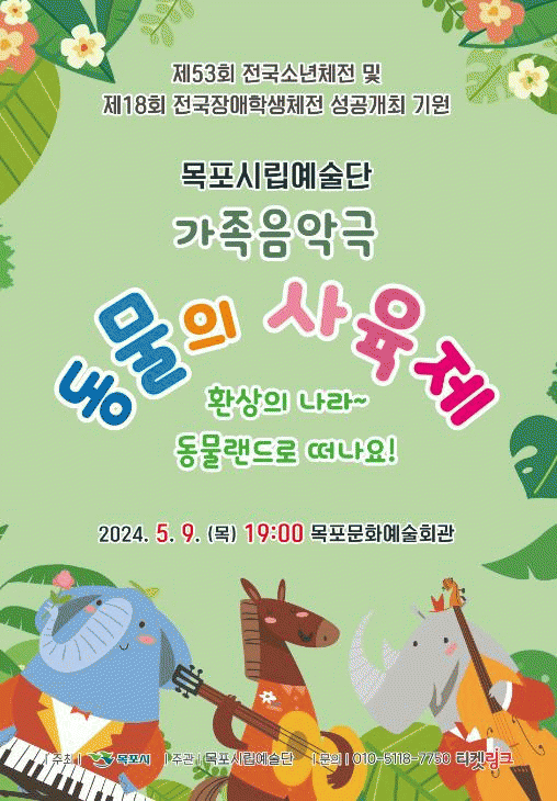 °¡Á·À½¾Ç±ØÀº ¡°µ¿¹°ÀÇ »çÀ°Á¦¡±(ȯ»óÀÇ ³ª¶ó~ µ¿¹°·£µå·Î ¶°³ª¿ä!)¸¦ ÁÖÁ¦·Î ¿À´Â 5¿ù 9ÀÏ ¿ÀÈÄ 7½Ã ¸ñÆ÷¹®È¿¹¼úȸ°ü °ø¿¬Àå¿¡¼ ¿¸°´Ù.