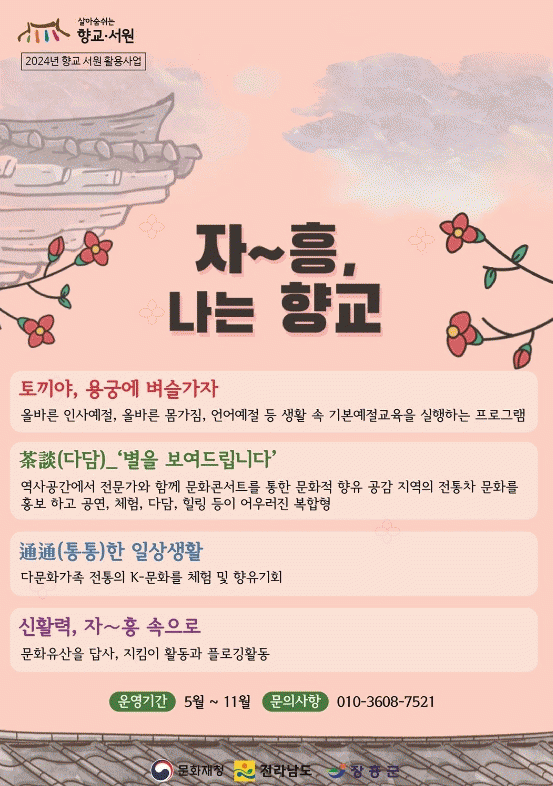±ºÀº À̹ø »ç¾÷À» ÅëÇØ ÀåÈïÇâ±³¸¦ ¹®È ÇâÀ¯ °ø°£À¸·Î Ȱ¿ëÇÔÀ¸·Î½á ¼±ºñ Á¤½Å¿Í Çѱ¹Àû ¹®ÇÐÀ» ǰÀº üÇè, ±³À°, °ø¿¬ µî ´Ù¾çÇÑ ÇÁ·Î±×·¥À» ÁøÇàÇÒ °èȹÀÌ´Ù.