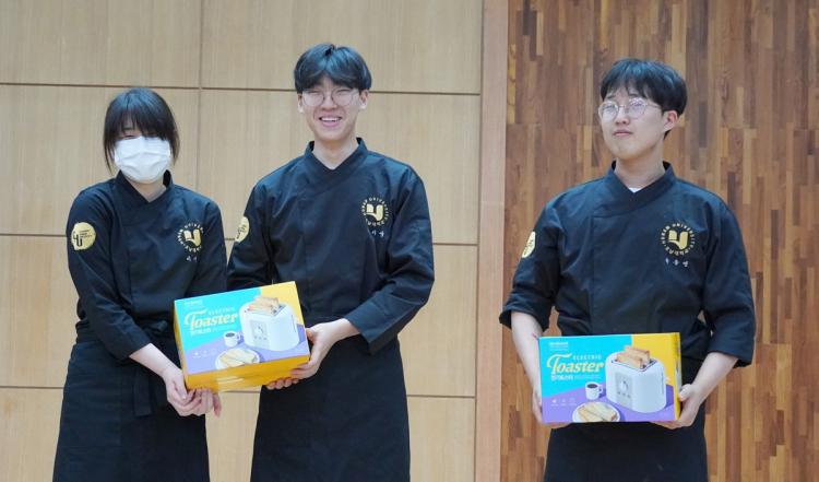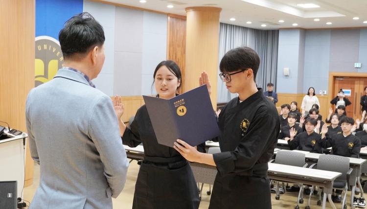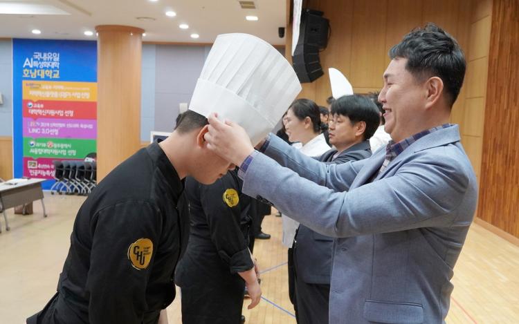 À̾î Áöµµ±³¼ö¿Í ±è¿µÈñ ¸íÀå, ¼±¹èµéÀÌ ½ÅÀÔ»ýµé¿¡°Ô Á¶¸®¸ð(Toque)¸¦ ¾º¿öÁÖ´Â ¿Ü½ÄÁ¶¸®ÀÎ Âø¸ð½Ä, ½ÅÀÔ»ý ´ëÇ¥ ÇѱÝÁø‧±è½Å¿µ ÇлýÀÇ Á¶¸®ÀÎ ¼±¼¹® ³¶µ¶, »çÀü °ø¸ð¸¦ °ÅÃÄ ¼±Á¤µÈ ¡®È£³²´ë Á¶¸®º¹ º£½ºÆ® µå·¹¼¡¯ ¼ö»óÀÚ(À¯½Â¿¬, ÃÖÀÌ»è, À̼¸°)¿¡ ´ëÇÑ ½Ã»ó½Äµµ ÁøÇàµÆ´Ù.