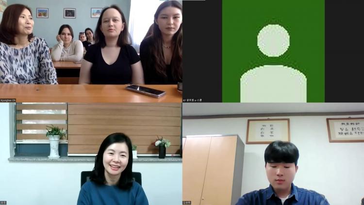 ½Ç½Ã°£ ¿Â¶óÀÎÀ¸·Î ÁøÇàµÈ À̳¯ °£´ãȸ¿¡´Â ¡®È£³²´ë KF ±Û·Î¹ú e-½ºÄð Çѱ¹¾î±³À°»ç¾÷´Ü(´ÜÀå ±Û·Î¹úÇѱ¹¾î±³À°Çаú À±¿µ ±³¼ö)¿Í ·¯½Ã¾Æ ¿ìÆÄ°úÇбâ¼ú´ë ¿À°æÈñ ±³¼ö(µ¿¾çÇкÎ) ¹× ÇлýµéÀÌ Âü¿©ÇßÀ¸¸ç, º½ Çб⿡ µè°í ÀÖ´Â ¡¯Çѱ¹¾î·Î ¹è¿ì´Â Çѱ¹¹®ÇÐ(VODÄÜÅÙÃ÷)¡® ¼ö¾÷¿¡ ´ëÇØ ÁúÀÇÀÀ´äÇÏ´Â ½Ã°£À» °¡Á³´Ù.
