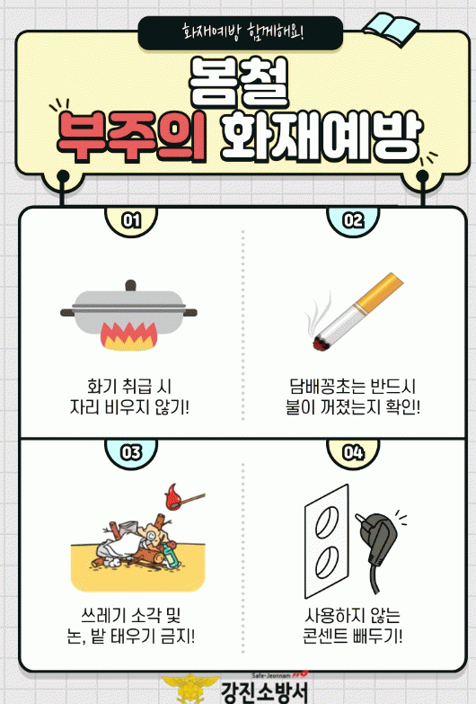 ÀÌ¿¡ ¼Ò¹æ¼´Â ¡ãÀ½½Ä¹° Á¶¸® ½Ã ÀÚ¸® ºñ¿ìÁö ¾Ê±â ¡ã´ã¹è²ÇÃÊ´Â ºÒ¾¾¸¦ ¿ÏÀüÈ÷ Á¦°Å ÈÄ ¾ÈÀüÇÑ °÷¿¡ ó¸®Çϱ⠡㾲·¹±â µîÀº ¼Ò°¢ÇÏÁö ¾Ê±â µî ÈÀç ¿¹¹æ¼öÄ¢À» ´Ù°¢ÀûÀÎ È«º¸¸¦ ÆîÄ¥ ¹æÄ§ÀÌ´Ù.