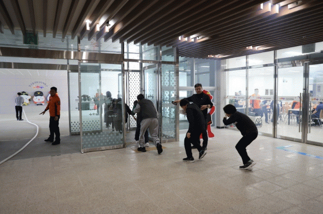 üÇè°ü Àüü Á÷¿øÀÌ Âü¿©ÇÑ À̹ø ÈÆ·ÃÀº ±¸³»½Ä´ç ³»ºÎ¿¡¼ ÈÀç°¡ ¹ß»ýÇÑ »óȲÀ» °¡Á¤ÇÑ ¸ðÀÇÈÆ·ÃÀ¸·Î ÁøÇàµÆ´Ù.