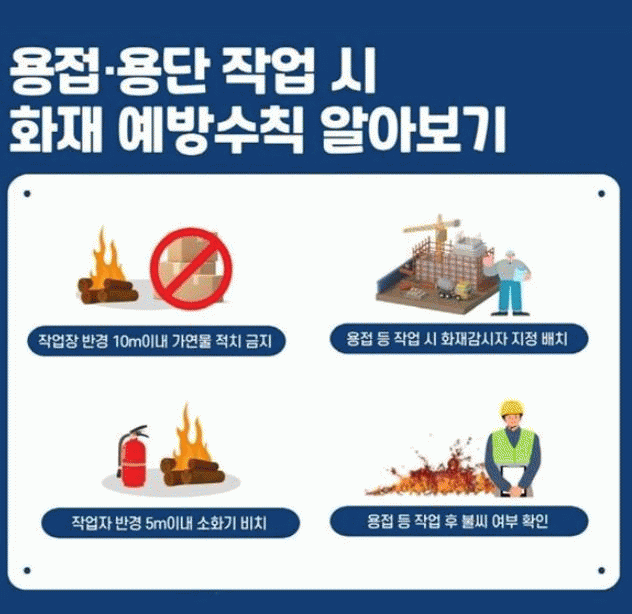 °Ç¼³ÇöÀå ¿ëÁ¢ºÒƼ, Àý´Ü ¾ÈÀü¼öÄ¢À¸·Î´Â ¡ãÈÀç°¨½ÃÀÚ ÁöÁ¤ ¹× ¹èÄ¡ È®ÀÎ ¡ã¿ëÁ¢¡¤¿ë´Ü ÀÛ¾÷ÀڷκÎÅÍ ¹Ý°æ 5m À̳» ¼Òȱ⠺ñÄ¡ ¡ã¿ëÁ¢¡¤¿ë´Ü ½Ã ÁÖº¯ °¡¿¬¹° Á¦°Å ¡ã¹ÐÆóµÈ °ø°£¿¡¼ ÀÛ¾÷ ½Ã ȯ±â ¡ã¿ëÁ¢ ÀÛ¾÷ ÈÄ 30ºÐ ÀÌ»ó ÀÜºÒ °¨½Ã µîÀÇ È°µ¿À» °Á¶Çϰí ÀÖ´Ù.