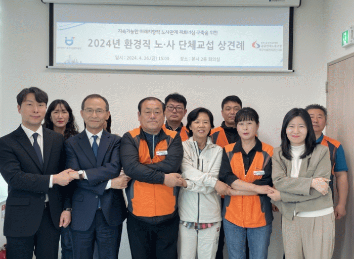 ÀÌ¿¡ ¹Ú¸í¼ö ³ëÃø ±³¼·´ëÇ¥À§¿øÀº "°ø´ÜÀÇ ÀÏ¿øÀ¸·Î¼ ¸ÃÀº ¹Ù ¾÷¹«¿¡ ÃÖ¼±À» ´ÙÇϰí ÀÖ´Â ¸ðµç Á÷¿øµéÀÇ ³ë°í¿¡ °¨»çµå¸°´Ù"¶ó°í È´äÇϸç, "À̹ø ±³¼·À» ÅëÇØ ³ë»ç°¡ ¼·ÎÀÇ ÀÔÀåÀ» ÀÌÇØÇϰí, ½Å·Ú À§¿¡ ´õ¿í °ß°íÇÑ °ü°è¸¦ ±¸ÃàÇØ ³ª°¡±æ Èñ¸ÁÇÑ´Ù"¶ó°í ¼Ò¸ÁÀ» ÀüÇß´Ù.