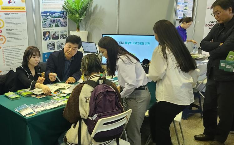±¤ÁÖ´ëÇб³ ±¹Á¦Çù·Âó Á÷¿øµéÀº À̹ø Àü½Ãȸ¿¡¼ Çлýµé¿¡°Ô Çб³ ¼Ò°³¿Í ÀÔÇÐ ¹æ¹ýÀÌ µé¾î°¡ ÀÖ´Â È«º¸ ÆÊÇ÷¿À» Á¦°øÇϰí, »ó´ã ÈÄ¿¡´Â ±¤ÁÖ´ë ±â³äǰ(º¼Ææ, ¶óÀÌÆ¼ ±×¸³Åå)À» Á¦°øÇß´Ù.