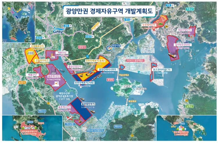 ÇöÀç Àü³² ¿©¼ö½Ã, ¼øÃµ½Ã, ±¤¾ç½Ã¿Í °æ³² Çϵ¿±º ÀÏ´ë¿¡ °ÉÃÄ ÃÑ 57.08§´ ¸éÀû¿¡ ±¤¾çÁö±¸, À²ÃÌÁö±¸, ½Å´öÁö±¸ µî 6°³ Áö±¸¿Í À²ÃÌ»ê´Ü, ´ë¼Û»ê´Ü µî 17°³ ´ÜÁö¸¦ °³¹ß Áß¿¡ ÀÖÀ¸¸ç, °èȹ ´ëºñ ¾à 86.6%ÀÇ ¼º°ú¸¦ º¸À̰í ÀÖ´Ù. ÀÌ´Â ¿©ÀǵµÀÇ ¿µÎ ¹è°¡ ³Ñ´Â Å©±âÀÌ¸ç ±¤¾ç°æÁ¦Ã»Àº 2030³â±îÁö ÃÑ 16Á¶ 2,769¾ï ¿øÀ» ÅõÀÚÇÏ¿© °³¹ßÇÒ °èȹÀÌ´Ù.