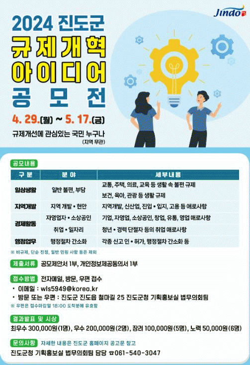 ¿À´Â 5¿ù 17ÀϱîÁö 3ÁÖ°£ Á¦¾È¼¸¦ Á¢¼ö¹Þ°í °³ÀÎ, ´Üü, Áö¿ª ¹«°ü, ±ÔÁ¦°³Çõ¿¡ °ü½ÉÀÖ´Â ´©±¸³ª °ø¸ðÀü¿¡ Âü¿©ÇÒ ¼ö ÀÖ´Ù.