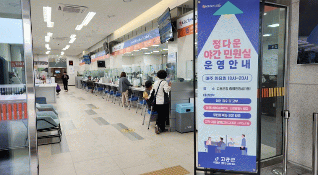 ¾ß°£ ¹Î¿ø½ÇÀº ¸ÅÁÖ È¿äÀÏ 18½ÃºÎÅÍ 20½Ã±îÁö(2½Ã°£) ±ºÃ» ¹Î¿ø½Ç¿¡¼ ¿î¿µµÇ°í ÀÖÀ¸¸ç ¼ºñ½º ºÐ¾ß´Â ¿©±Ç¹ß±Þ ½Åû¡¤±³ºÎ, Àΰ¨Áõ¸í¼ ¹ß±Þ, Áֹεî·Ï µî¡¤Ãʺ» ¹ß±Þ, ±âŸ ¹Î¿ø ¾È³» µîÀ» Á¦°øÇϰí ÀÖÀ¸¸ç, ±Ý³â 1¿ùºÎÅÍ´Â ÁöÀû¡¤ÅäÁö´ëÀå ¹ß±ÞÀ» Ãß°¡·Î Æ÷ÇÔ, ¼ºñ½º¸¦ È®´ëÇϰí ÀÖ´Ù