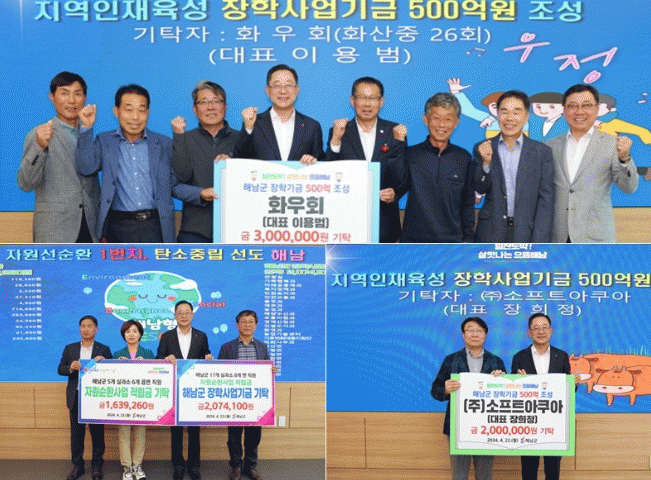¸íÇö°ü ÇØ³²±º¼ö´Â¡°Çس²±º ÀåÇлç¾÷±â±Ý 500¾ï¿ø Á¶¼º¿¡ Á¤¼ºÀ» ¸ð¾ÆÁֽЏðµç ºÐµé²² °¨»çµå¸°´Ù.¡±¸ç¡°°¢°èÀÇ °ü½ÉÀÌ ¸ð¿© ¾ÆÀÌŰ¿ì±â ÁÁÀº ±³À°µµ½Ã ÇØ³² ºñÀüÀ» ÇâÇØ ÇѰÉÀ½ ´õ ´Ù°¡°¥ ¼ö ÀÖ°Ô µÆ´Ù¡±°í ÀüÇß´Ù.
