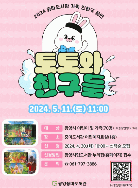 ±¤¾ç½Ã ¾î¸°ÀÌ¿Í °¡Á· 70¸íÀ» ´ë»óÀ¸·Î ¼±Âø¼ø ¸ðÁýÇϸç, ½ÅûÀº 4¿ù 30ÀÏ ¿ÀÀü 10½ÃºÎÅÍ ±¤¾ç½Ã¸³µµ¼°ü ´©¸®ÁýÀ» ÅëÇØ ÇÒ ¼ö ÀÖ´Ù.