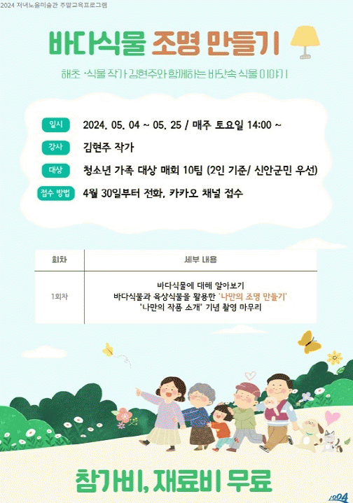 À̹ø ÇÁ·Î±×·¥Àº ÁÖ¸»¿¡ ÀÌ·ç¾îÁö´Â ±³À°À¸·Î ¿À´Â 5¿ù 4ÀϺÎÅÍ 26ÀϱîÁö ¸ÅÁÖ Åä¿äÀÏ 14½ÃºÎÅÍ ÁøÇàÇϸç, Âü°¡ºñ´Â ¹«·á·Î ¸Åȸ û¼Ò³â °¡Á· 10ÆÀÀ» ¸ðÁýÇÑ´Ù.