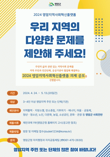 ¿µ¾Ï±º °ü°èÀÚ´Â ¡°¹Î°üÇù·ÂÀ¸·Î Áö¿ª ¹®Á¦¸¦ ÇØ°áÇϴ ù ´Ü°èÀÎ ÀÇÁ¦ °ø¸ð¿¡ ¸¹Àº °ü½É°ú Âü¿©¸¦ ¹Ù¶õ´Ù. Áö¿ª»çȸ ´Ù¾çÇÑ ÁÖüÀÇ Âü¿©¿Í Çù·ÂÀ¸·Î Çõ½ÅÀÇ ¹®È¸¦ ÇÔ²² ¸¸µéÀÚ¡±°í ÀüÇß´Ù.