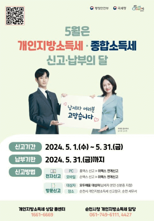 2023³â ±Í¼Ó Á¾ÇÕ¼ÒµæÀÌ ÀÖ´Â ³³¼¼ÀÚ´Â 5¿ù Á¾ÇÕ¼Òµæ È®Á¤½Å°í ½Ã °³ÀÎÁö¹æ¼Òµæ¼¼´Â À§Åýº Á¾Çռҵ漼´Â ȨÅýº¿¡¼' Æí¸®ÇÏ°Ô ÀüÀÚ½Å°í¸¦ ÇÒ ¼ö ÀÖ´Ù. ¶ÇÇÑ, ¼ÕÅýº ¾Û¿¡¼´Â ¼Òµæ¼¼ ½Å°í ÈÄ À§Åýº ¸ð¹ÙÀÏ È¸éÀ¸·Î ÀÚµ¿ ¿¬°èµÇ¾î Æí¸®ÇÏ°Ô ½Å°íÇÒ ¼ö ÀÖ´Ù.
