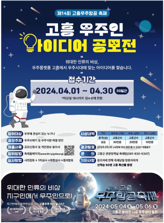Áö³ 4¿ù 1ÀϺÎÅÍ 30ÀϱîÁö ¿Â¶óÀÎÀ¸·Î ÀÀ¸ðÇÑ °íÈï ¿ìÁÖÀÎ ¾ÆÀ̵ð¾î °ø¸ðÀüÀÌ´Ù.