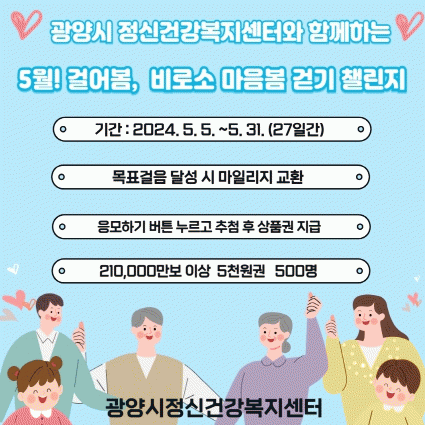 ¼¿µ¿Á °Ç°ÁõÁø°úÀåÀº ¡°À̹ø 縰Áö¸¦ ÅëÇØ ¾Æ¸§´Ù¿î °èÀý 5¿ù¿¡ Á¤½Å°Ç°¿¡ ÁÁÀº °È±â¸¦ ½ÇÃµÇØ ÀÚ½ÅÀÇ ¸¶À½ °Ç°¿¡ ´ëÇØ »ìÆìº¸´Â °è±â°¡ µÇ±æ ¹Ù¶õ´Ù¡±¸ç ¡°½Ã¹ÎµéÀÇ ¸¹Àº °ü½É°ú Âü¿©¸¦ ¹Ù¶õ´Ù¡±°í ¸»Çß´Ù.