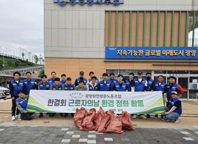 À̳¯ Ȱµ¿Àº 5¿ù 1ÀÏ ±Ù·ÎÀÚÀÇ ³¯À» ¸Â¾Æ ±¤¾çÇ׸¸Ç׿î³ëµ¿Á¶ÇÕ ÇѰáȸ ȸ¿ø 30¿© ¸íÀÌ ±¤¿µµ¿ ÁֹεéÀÇ »ýȰȯ°æ °³¼±°ú Áö¿ª»çȸ ȯ°æº¸ÀüÀ» À§ÇØ µµ·Îº¯ ¾²·¹±â¸¦ ÁýÁß ¼ö°ÅÇÏ´Â µî ȯ°æÁ¤È Ȱµ¿À» ½Ç½ÃÇß´Ù.