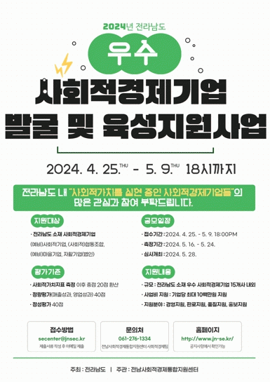 Àü³²µµ ´©¸®Áý¿¡¼ ½Åû¼¸¦ ³»·Á¹Þ¾Æ Àü³²»çȸÀû°æÁ¦ÅëÇÕÁö¿ø¼¾ÅÍ¿¡ À̸ÞÀÏ·Î Á¦ÃâÇÏ¸é µÈ´Ù. ¼±Á¤ °á°ú´Â ¼·ù ¹× ´ë¸é½É»ç ÈÄ 5¿ù±îÁö ±â¾÷¿¡ °³º° ¾È³»ÇÑ´Ù.