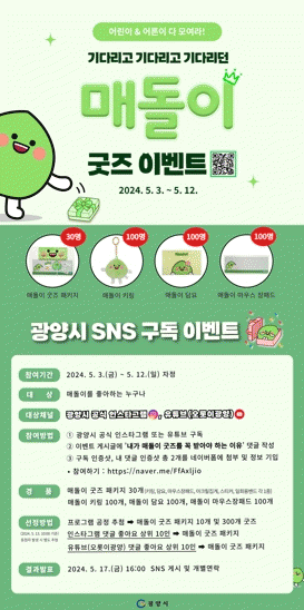 Á¤ÇØÁ¾ È«º¸¼ÒÅë½ÇÀåÀº ¡°À̹ø À̺¥Æ®´Â °¡Á¤ÀÇ ´ÞÀ» ¸Â¾Æ ±¤¾ç½Ã °ø½Ä SNS¿Í ±¤¾ç½Ã ij¸¯ÅÍ ¡®¸Åµ¹ÀÌ¡¯¿¡ º¸³»Áֽô ½Ã¹ÎµéÀÇ ²ÙÁØÇÑ »ç¶û¿¡ º¸´äÇϱâ À§ÇØ °¨»çÇÑ ¸¶À½À» ´ã¾Æ ÁغñÇß´Ù¡±¸ç ¡°¾ÕÀ¸·Îµµ ¡®¸Åµ¹ÀÌ¡¯¿Í ±¤¾ç½Ã °ø½Ä SNS¿¡ ¸¹Àº °ü½É°ú ¾ÖÁ¤À» °¡Á®ÁÖ½Ã±æ ¹Ù¶õ´Ù¡±°í ¸»Çß´Ù.