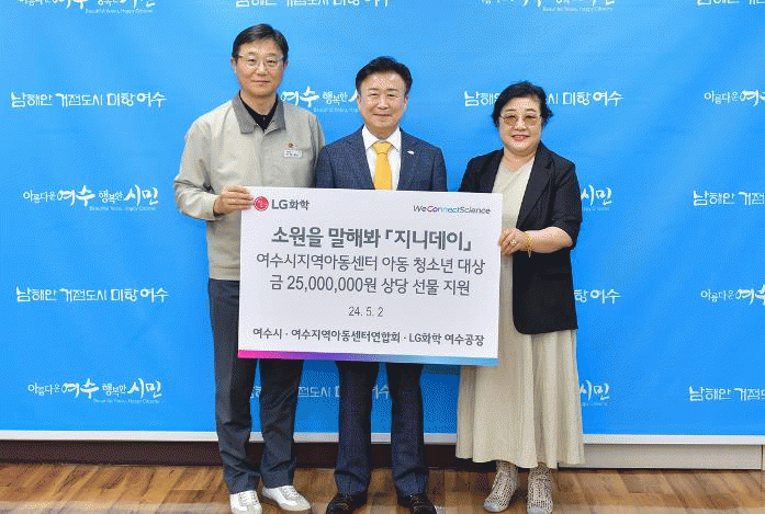 Á¤±â¸í ¿©¼ö½ÃÀåÀº ¡°Àú¼Òµæ ¾Æµ¿À» À§ÇØ Áö¼ÓÀûÀ¸·Î ÈÄ¿øÇØ ÁֽŠLGÈÇп¡ °¨»ç¸¦ µå¸°´Ù¡±¸ç ¡°¾Æµ¿µéÀÌ ¸¾²¯ ²ÞÀ» ÆîÄ¡¸ç ÇູÇÒ ¼ö ÀÖ´Â µµ½Ã ¸¸µé±â¿¡ ÃÖ¼±À» ´ÙÇϰڴ١±°í ¸»Çß´Ù.
