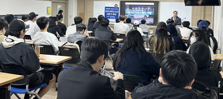 ¹Ì·¡ÀÚµ¿Â÷°øÇкÎ, ÄÄÇ»ÅͰøÇаú ÀçÇлý 70¿© ¸íÀÌ ÇÔ²²ÇÑ °¡¿îµ¥ ¸¶·ÃµÈ À̳¯ Ư°Àº ¡®¹Ì·¡ÀÚµ¿Â÷ Àü¸Á ¹× »ó¿ëÈ¡¯¸¦ ÁÖÁ¦·Î ¹Ì·¡ÀÚµ¿Â÷ »ê¾÷ÀÇ Àü¸Á°ú ÀÚµ¿Â÷¾ÈÀü¿¬±¸¿øÀÇ ¿ªÇÒ¿¡ ´ëÇÑ ³»¿ëÀ¸·Î ÁøÇàµÆ´Ù.