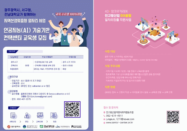 ¡®ÀΰøÁö´É ±â¼ú ±â¹Ý ÄÁÅü¾ÅÍ ±³À°ÈÆ·Ã ¹× Ãë¾÷¿¬°è »ç¾÷¡¯Àº ÇöÀç ±¤ÁÖ ÄÁÅÃ(ÄÝ)¼¾ÅÍÀÇ 50% ÀÌ»óÀÌ ÁýÁߵǾî ÀÖ´Â ¼±¸Áö¿ª Ư¼ºÀ» ¹Ý¿µÇØ »ó´ã¿ø ¾ç¼º ÀΰøÁö´É ±â¼ú±â¹Ý ÄÁÅü¾ÅÍ ±³À°À» ÁøÇàÇϰí Ãë¾÷±îÁö ¿¬°èÇÑ´Ù.