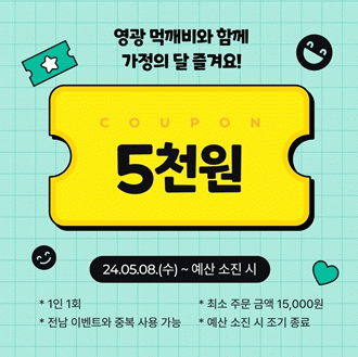 ¾î¹öÀ̳¯ÀÎ 5¿ù 8ÀϺÎÅÍ ¸Ô±úºñ¿¡¼ 1¸¸ 5õ ¿ø ÀÌ»ó ÁÖ¹®ÇÏ´Â ¼±Âø¼ø 200¸í¿¡°Ô 5õ ¿ø ÇÒÀÎÄíÆùÀÌ Á¦°øµÈ´Ù.