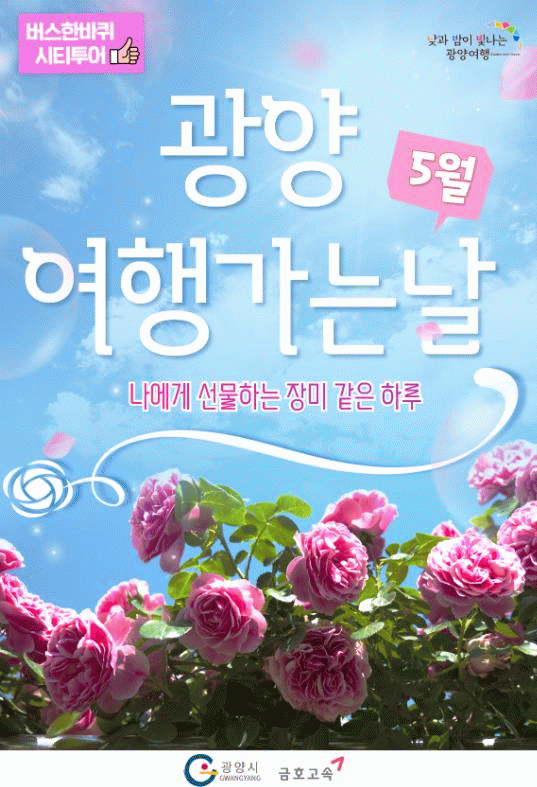¡®±¤¾ç¿©Çà °¡´Â ³¯¡¯ 5¿ù ÄÚ½º´Â ±¤ÁÖÀ¯½ºÄù¾î¿¡¼ Ãâ¹ßÇØ ±¤¾ç5ÀϽÃÀå, ¼Ãµº¯ Àå¹Ì°ø¿ø, ±è½Ã½ÄÁö, ±¤¾çÁ¦Ã¶¼Ò µî ´Ùä·Î¿î ±¸¼ºÀ¸·Î 16ÀÏ, 21ÀÏ µî ÃÑ 2ȸ ¿î¿µµÈ´Ù.