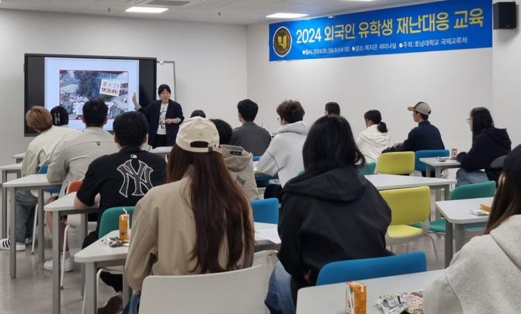[ÅåÅå´º½º]È£³²´ëÇб³ ±¹Á¦±³·ùó(óÀå ¼Õ¿ÏÀÌ)´Â 5¿ù 8ÀÏ º¹Áö°ü ¼¼¹Ì³ª½Ç¿¡¼ ¿Ü±¹ÀÎ À¯ÇлýµéÀ» ´ë»óÀ¸·Î Àç³¾ÈÀü ±³À° ÇÁ·Î±×·¥À» ÁøÇàÇß´Ù.