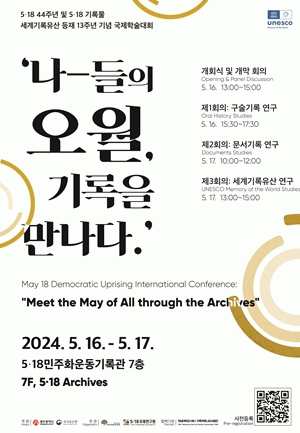 ¡®³ª-µéÀÇ ¿À¿ù, ±â·ÏÀ» ¸¸³ª´Ù¡¯¸¦ ÁÖÁ¦·Î 5¡¤18¹ÎÁÖȿ±â·Ï°ü°ú 5¡¤18±â³äÀç´ÜÀÌ °øµ¿ ÁÖÃÖÇÏ´Â À̹ø Çмú´ëȸ´Â 80³â ¿À¿ù ±¤ÁÖ¿¡ ´ëÇÑ °³ÀÎÀÇ °æÇè, ½Ã¹Î °øµ¿Ã¼, ÁýÇÕÀû ¿À¿ùÀÇ ±â¾ïµéÀÌ ±â·ÏÀ» ÅëÇØ ¾î¶»°Ô ³²°ÜÁö°í °è½ÂµÇ´Â Áö¸¦ »ìÆìº»´Ù.