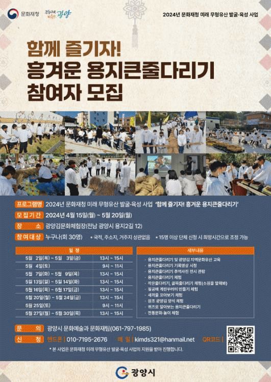 ÁÖ¿ä ³»¿ëÀº ¡ã¿ëÁöÅ«Áٴٸ®±â ¹× ±¤¾ç±è Áö¿ª¹®ÈÀ¯»ê ±³À° ¡ã±â·Ï¿µ»ó ½Ãû ¡ãÃß¾ï»çÁø Àü½Ã °ü¶÷ ¡ãÀÛÀºÁٴٸ®±â ¡¤ °ñ¸ñÁٴٸ®±â üÇè(¼Ò¿øÀ» ¸»ÇغÁ) ¡ã¤°ø¿¹ °è¶õ²Ù·¯¹Ì ¸¸µé±â ¡ã»õ³¢ÁÙ ²¿¾Æº¸±â ¡ã¿øÁ¶ ±¤¾ç±è ¾ç½Ä üÇè ¡ãÄûÁî·Î ¾Ë¾Æº¸´Â ¿ëÁöÅ«Áٴٸ®±â ¡ãÀüÅ빮ȡ¤³îÀÌ Ã¼Çè µîÀ¸·Î ÀÌ·ïÁ³´Ù.