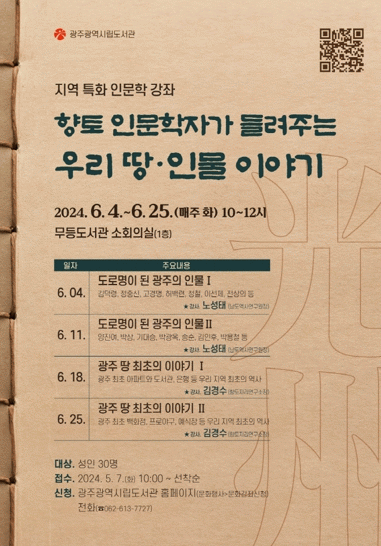 °¿¬Àº Áö¿ª Àι®ÇÐÀÚµéÀÌ ¸Ã¾Æ ±¤ÁÖÀÇ Áö¸®¿Í Àι° µîÀ» ¼Ò°³ÇÑ´Ù.