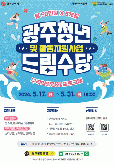½ÅûÀº 17ÀϺÎÅÍ 31ÀϱîÁö ±¤ÁÖû³âµå¸²¼ö´ç °ø½Ä»çÀÌÆ®¿¡¼ ÇÏ¸é µÈ´Ù. ±¤Áֽô Áö¿ø ½ÅûÀÚÀÇ °¡±¸ ¼Òµæ, ¹ÌÃë¾÷ ±â°£, ±¸Á÷Ȱµ¿°èȹ¼¸¦ ½É»çÇØ ´ë»óÀÚ¸¦ ¼±¹ßÇϰí 6¿ù 27ÀÏ ±¤Áֽà ´©¸®Áý¿¡ °ø°³ÇÏ°í ¹®ÀÚ¸Þ½ÃÁö¸¦ ÅëÇØ °³º° Å뺸ÇÒ ¿¹Á¤ÀÌ´Ù.