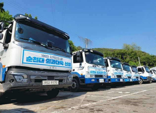 ¼øÃµ½Ã Á÷¿µ û¼ÒÂ÷·®°ú ´ëÇà»ç û¼ÒÂ÷·® ÃÑ 60´ë¿¡ ¡®100¸¸ Áö¿ª¹ÎÀÇ ²Þ ¼øÃµ´ë Àǰú´ëÇÐ ½Å¼³¡¯Çö¼ö¸·À» ºÎÂøÇϰí 24°³ À¾¸éµ¿ ±¸¼®±¸¼®À» µ¹¸ç Áö¿ª¹ÎÀÇ ±¹¸³¼øÃµ´ë ÀÇ´ë ½Å¼³ ÀÇÁö¸¦ ¾Ë¸®°í ÀÖ´Ù.