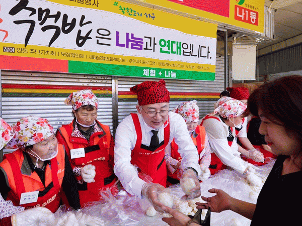 ±èÀ̰ ¼±¸Ã»ÀåÀº ¡°44³â Àü ¾çµ¿½ÃÀå »óÀεéÀÌ ¼Õ¼ö º¸¿©Á̴ּø ³ª´®°ú ¿¬´ëÀÇ ÁÖ¸Ô¹ä Á¤½ÅÀ» ¿À·ÔÀÌ À̾î¹Þ¾Æ ³ª´®°ú ¹è·Á, ½Å·Ú¿Í µ¿ÇàÀÇ ÂøÇÑÁ¤Ã¥µéÀ» ÆîÄ¡¸ç ÂøÇÑ»ç¶÷ÀÌ ÇູÇϰí ÂøÇѱâ¾÷ÀÌ ¼º°øÇÏ´Â ÂøÇѵµ½Ã ¼±¸¸¦ ½ÇÇöÇØ ³ª°¡°Ú´Ù¡±°í ¸»Çß´Ù. ¾Æ¿ï·¯ ¡°5¡¤18À» °æÇèÇÑ ¼¼´ë°¡ »ì¾Æ°è½Ç ¶§ ¹Ì·¡¼¼´ë¿Í ´õ¿í Àû±ØÀûÀ¸·Î ¼ÒÅëÇÏ°í ¿¬´ëÇÒ ¼ö ÀÖ´Â °è±â¸¦ ¸¹ÀÌ ¸¸µé°Ú´Ù¡±°í µ¡ºÙ¿´´Ù.