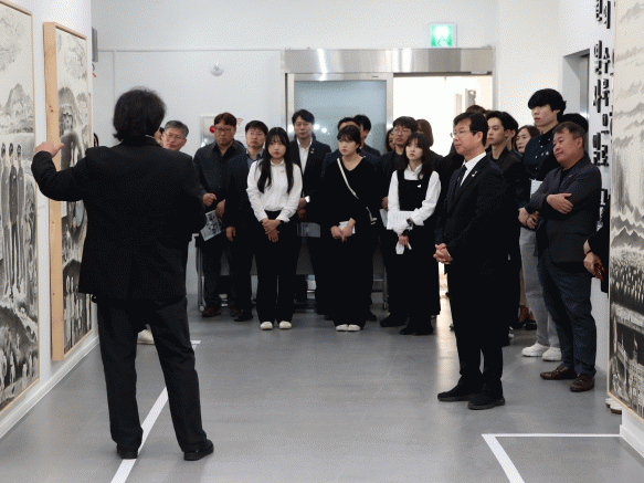 ¶Ç Áö³ 4¿ù 17ÀÏ °³°üÇÑ 'À±»ó¿ø ±â³ä°ü(õµ¿¸¶À» ¹ÎÁÖÄ¿¹Â´ÏƼ¼¾ÅÍ)'À» ¹æ¹®ÇØ ¡®´ÔÀ» À§ÇÑ ÇàÁø°î-À±»ó¿ø ÀÏ´ë±â Àü(î÷)¡¯ Àü½Ã¸¦ °ü¶÷Çß´Ù. À±»ó¿ø ÀÏ´ë±â ±×¸²À» ±×¸° ÇϼºÈí ÀÛ°¡°¡ µ¿ÇàÇØ Á÷Á¢ ÀÛǰÀ» ÇØ¼³ÇÏ¸ç ¾È³»Çß´Ù.