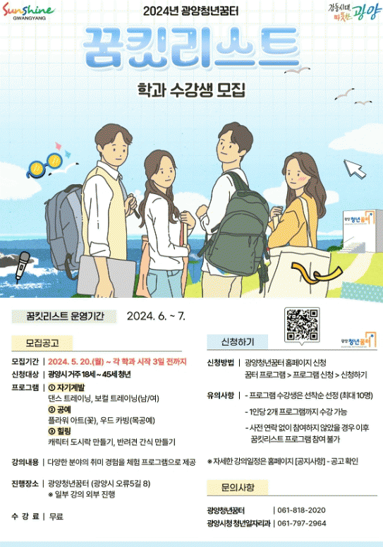 ¼ö° ½ÅûÀº ±¤¾çû³â²ÞÅÍ È¨ÆäÀÌÁö¿¡¼ ¿Â¶óÀÎÀ¸·Î¸¸ °¡´ÉÇϸç, 18¼¼ ÀÌ»ó 45¼¼ ÀÌÇÏ ±¤¾ç½Ã û³âÀÌ¸é ´©±¸³ª Âü¿©ÇÒ ¼ö ÀÖ´Ù.