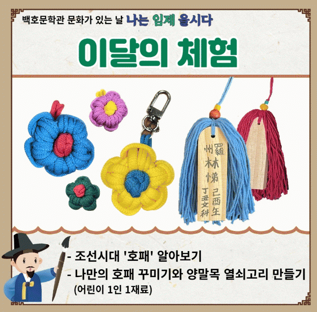³ªÁֽô ¿À´Â 25ÀÏ ¿ÀÈÄ 2½Ã ¹éÈ£¹®Çаü¿¡¼ Á¶¼±½Ã´ë ½ÅºÐÁõÀΠȣÆÐ¿¡ ´ëÇØ ¾Ë¾Æº¸°í Á÷Á¢ È£ÆÐ¸¦ ¸¸µé¾î º¸´Â ¡®³ª´Â ÀÓÁ¦¿Ã½Ã´Ù¡¯ ÇÁ·Î±×·¥À» ÁøÇàÇÑ´Ù°í 16ÀÏ ¹àÇû´Ù.
