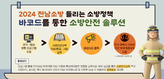 À̸¦ À§ÇØ, ¹ÙÄÚµå Ȱ¿ë È«º¸ µ¿¿µ»óÀ» Á¦ÀÛÇÏ¿´°í, ¹ÙÄÚµå·Î ÀνĵǴ ¼Ò¹æ±³À°ÀÚ·á¿Í ¸®Çø´, ¹Î¿ø¼½Ä µîÀ» Á¦ÀÛÇÏ¿´À¸¸ç ¾ÈÀü Ãë¾à°èÃþ ´ë»ó À¯Çüº° Ư¼º¿¡ ¸ÂÃá ±³À°ÀÚ·á·Î Á¦°øÇÒ °èȹÀÌ´Ù.