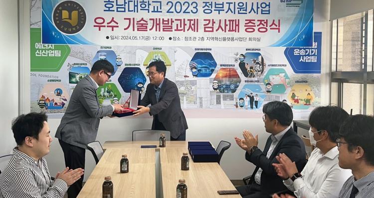 À̳¯ ÁõÁ¤½ÄÀº Áö³ 2023³âµµ Áö¿ªÇõ½ÅÇ÷§Æû»ç¾÷´Ü°ú LINC3.0»ç¾÷´Ü¿¡¼ Áö¿øÇÑ ±â¼ú°³¹ß°úÁ¦ ¼öÇà °á°ú¿¡ ´ëÇÑ »ç¾÷´ÜÀå, »ç¾÷ Ã¥ÀÓ±³¼öÀÇ Æò°¡·Î ÃÑ 4°³ÀÇ ±â¼ú°³¹ß°úÁ¦ Ã¥ÀÓ±³¼öµé¿¡°Ô ±×°£ÀÇ ³ë°í¿¡ °¨»çÀÇ Àǹ̸¦ ´ãÀº °¨»çÆÐ¿Í ±â³äǰÀ» ÁõÁ¤Çß´Ù.