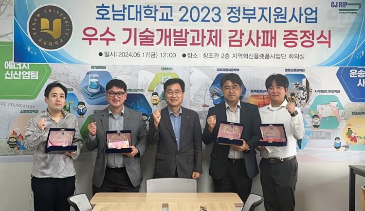 °¨»çÆÐ¸¦ ¹ÞÀº ±³¼ö´Â ¹Ìµð¾î¿µ»ó°ø¿¬Çаú °í¿ëÇÑ ±³¼ö, ¹Ì·¡ÀÚµ¿Â÷°øÇкΠ±èµ¿¹Î ±³¼ö, ·Îº¿µå·Ð°øÇаú ±è»ó¹ü ±³¼ö, »êÇÐÇù·Â´Ü ±èÇѼ® ±³¼ö µî ÃÑ 4¸íÀ¸·Î °¢ ±â¼ú°³¹ß °úÁ¦¿¡¼ ±â¼úÀÌÀü·á, ƯÇãÃâ¿ø µî ¿ì¼öÇÑ °á°ú¸¦ º¸¿©ÁÖ¾ú´Ù.