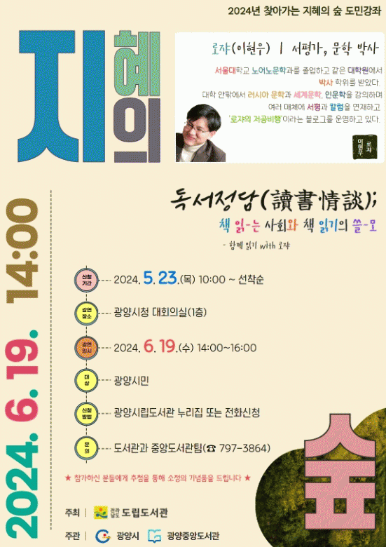 ¿ÃÇØ´Â ¡®µ¶¼Á¤´ã(ÔÁßöï×ÓÈ); Ã¥ Àд »çȸ¿Í Ã¥ ÀбâÀÇ ¾µ¸ð¡¯¸¦ ÁÖÁ¦·Î ±¤¾ç½Ã¹Î°ú ÇÔ²² Áñ±â´Â Àι®ÇÐ °¿¬À¸·Î ÁøÇàµÈ´Ù.