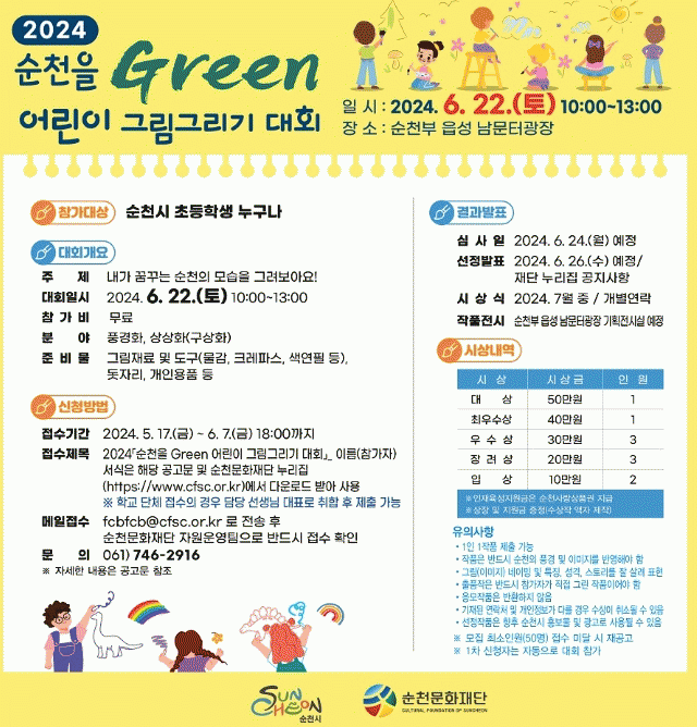 ÀÌ ´ëȸ´Â ¼øÃµ½Ã ÃʵîÇлýµéÀ» ´ë»óÀ¸·Î Çϸç, 6¿ù 22ÀÏ 10:00 ºÎÅÍ 13:00 ¼øÃµºÎ À¾¼º ³²¹®Åͱ¤Àå¿¡¼ ÁøÇàµÈ´Ù.