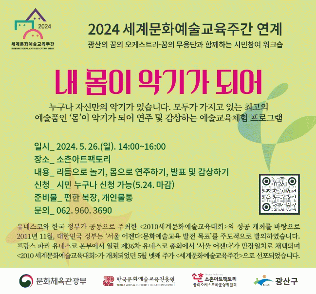 Çà»ç¸¦ ÇÔ²² ±âȹÇÑ ²ÞÀÇ ¿ÀÄɽºÆ®¶ó ¡®±¤»ê¡¯ ÀÌÁØÇà À½¾Ç°¨µ¶°ú ²ÞÀÇ ¹«¿ë´Ü ¡®±¤»ê¡¯ ½ÅÈñÈï ¹«¿ë°¨µ¶Àº ¡°2024 ¼¼°è¹®È¿¹¼ú±³À°ÁÖ°£ÀÇ Àǹ̸¦ µÇ»õ±â°í, ½Ã¹Î¿¡°Ô ¹®È¿¹¼ú±³À° Á¤Ã¥ÀÇ °ø°¨´ë¸¦ È®»êÇÏ´Â ÀåÀÌ µÇ±æ ±â´ëÇÑ´Ù¡±°í ¸»Çß´Ù.