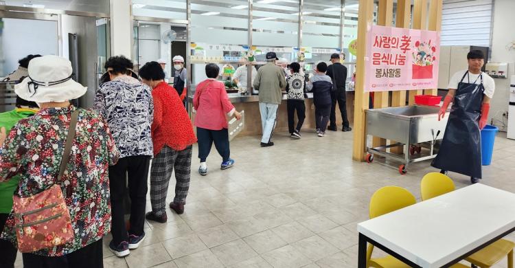 ¾î¹öÀ̳¯°ú ¿¬°èÇØ ÁøÇàÇÑ ÀÌ Çà»ç´Â ¿Ü½ÄÁ¶¸®Çаú ¼Ò¼Ó »çȸºÀ»ç´Ü ÇÏ¿ÀÃ÷¿Í »§Å¸Áö¾Æ ÇлýµéÀÇ Çаú Àü°ø¿¬°è Àç´É³ª´® ºÀ»çȰµ¿ÀÇ ÀÏȯÀ¸·Î À۳⿡ ÀÌ¾î ¿ÃÇØµµ ±¤»ê±¸ Çູ³ª·ç ³ëÀκ¹Áö°ü¿¡¼ º¹Áö°ü ¼Ò¼Ó ȸ¿ø ¹× Áö¿ª ¾î¸£½Å 300¿©ºÐ²² À½½ÄÀ» ¸¸µé¾î ¹è½ÄÇÏ´Â ¹æ½ÄÀ¸·Î ÁøÇàÇß´Ù.