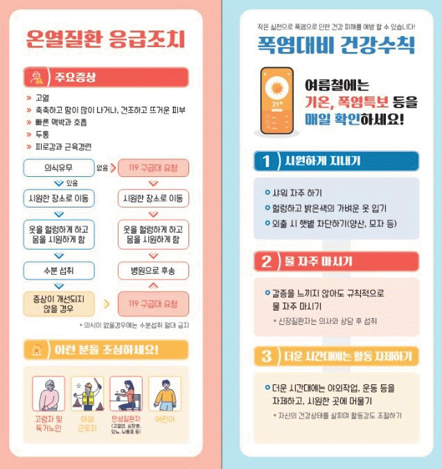ƯÈ÷, ¿»çº´Àº ü¿ÂÁ¶Àý ÁßÃ߽ŰæÀÌ ±â´ÉÀ» »ó½ÇÇØ ü¿ÂÀÌ 40¡É ÀÌ»óÀ¸·Î »ó½ÂÇÏ´Â À§ÇèÇÑ ÁúȯÀ¸·Î, Áï½Ã 119¿¡ ½Å°íÇÑ ÈÄ Ã¼¿ÂÀ» ³·Ãß´Â ÀÀ±ÞÁ¶Ä¡¿¡ µé¾î°¡¾ß ÇÑ´Ù.