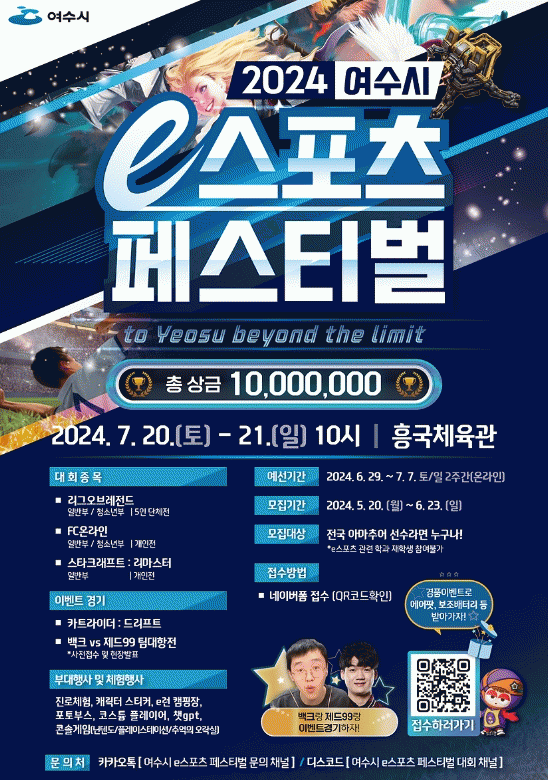 ¡®2024 ¿©¼ö½Ã e½ºÆ÷Ã÷ Æä½ºÆ¼¹ú¡¯Àº e½ºÆ÷Ã÷ ´ëȸ¿Í ÀÎÇ÷ç¾ð¼¿Í ÇÔ²² ÇÏ´Â À̺¥Æ® °æ±â µî ´Ù¾çÇÑ °ÔÀÓÄÜÅÙÃ÷ üÇè ÃàÁ¦·Î 7¿ù20Àϰú 21ÀÏ ¾çÀϰ£ ¿©¼öÈﱹüÀ°°ü¿¡¼ ¿¸°´Ù.