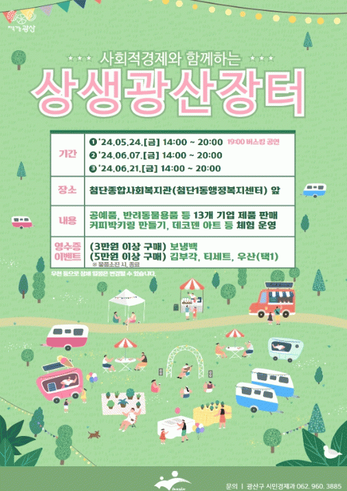 »çȸÀû°æÁ¦ ÁÖü, ¼Ò»ó°øÀÎ µîÀÌ Âü¿©ÇØ ´Ù¾çÇÑ Á¦Ç°À» ¼Ò°³Çϰí, üÇè ÇÁ·Î±×·¥À» ¿î¿µÇÏ´Â ±¤»ê±¸¸¸ÀÇ »ó»ý ÀåÅÍ´Ù.